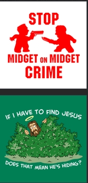 Toen ik op Aruba woonde had ik wel meer dan 100 T-shirts. Daar heeft namelijk alles en iedereen z’n eigen shirt en die krijg je overal gratis bij. Ik had T-shirts van de politieke partij (AVP), het benzinestation, carnaval, valentijnsdag, kerst en pasen, de supermarkt, de lokale bars en discotheken, losse politici, mijn buurt, mijn straat, mezelf (jahaa) en nog net niet van mijn huis. Ik droeg een klein deel van de leukere shirts ook wel, maar de meeste lagen binnen de kortste keren op de pyama plank. Toen mijn vriend me op de site www.tshirthell.com wees was ik dan ook niet direct getriggered om er ook echt heen te surfen. Dat is nu bijna 2 jaar geleden en 2 weken terug besloot ik voor de gein toch maar eens te kijken. Ik verveelde me stierlijk en had verder alles al bekeken wat ik wilde bekijken. Tshirthell.com bleek een nogal politiek incorrecte site met tshirt waarop bij vlagen de meest briljante teksten gedrukt staan. Die op het plaatje wordt mijn eerste aankoop. Hier nog een paar die ik ook nog wel geinig vond: